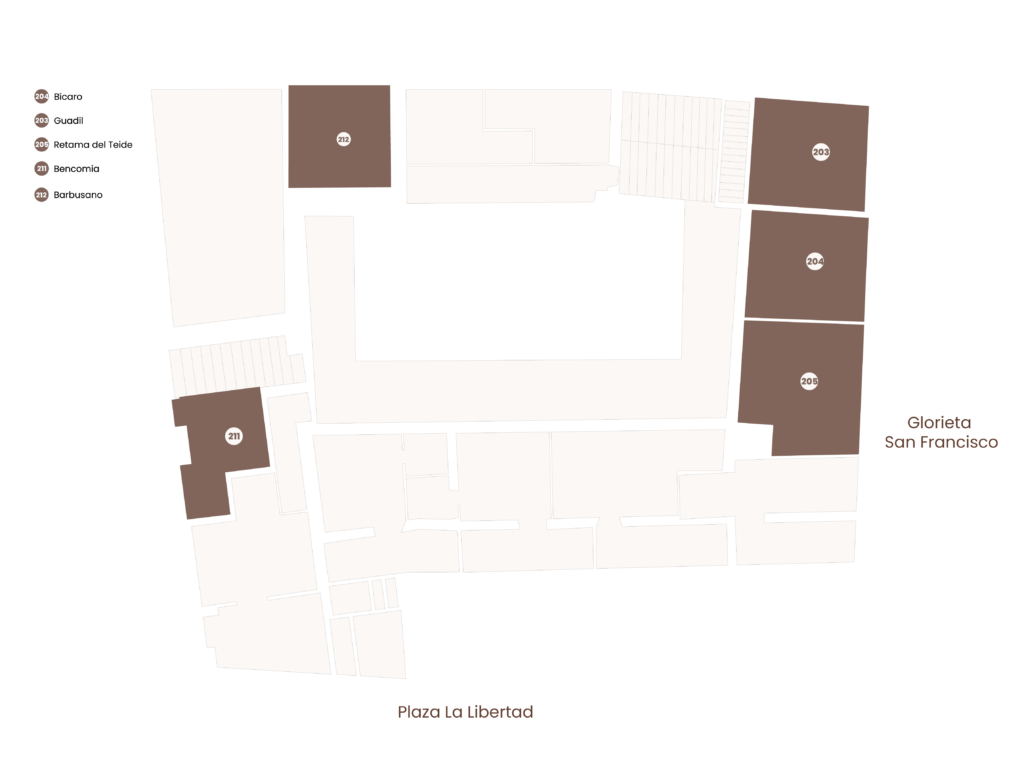 Die Zimmer Guadil (203), Bícaro (204) und Retama del Teide (205) befinden sich in den ehemaligen Räumen des Marquis an der Vorderseite des Hauses mit Blick auf die lebhaften Platz Glorieta de San Francisco. Mit ihren hohen Holzdecken, den historischen Fenstern mit Sitzbänken, von denen aus Sie das Kommen und Gehen von Einheimischen und Touristen beobachten können, und ihrer Geräumigkeit (35 m2) bieten sie den perfekten Rahmen, um die Essenz von Garachico auf sich wirken zu lassen.